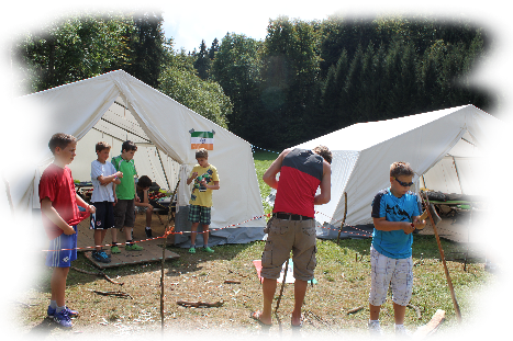 Nach einer kleinen Verschnaufpause fingen wir sofort an unsere Zelte zu verschönern. Egal ob Fahnen malen, Zäune basteln, Stühle bauen oder andere nützliche Bauwerke.
