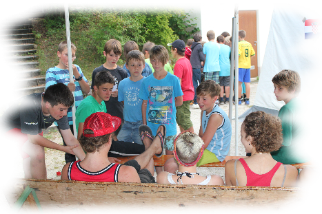 An unserem ersten vollen Tag sind wir morgens um 7:15 Uhr geweckt worden. Unser Tag begann mit einer gemeinsamen Morgenwache. Wir sangen gemeinsam unser Lagerlied und hörten eine kurze Geschichte über einen verletzen Welpen und der Freundschaft zu einem kleinen Jungen.