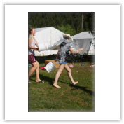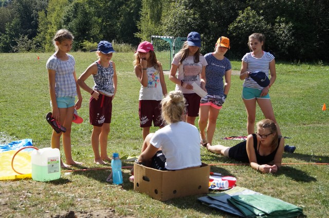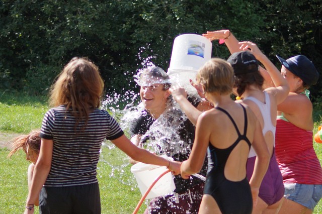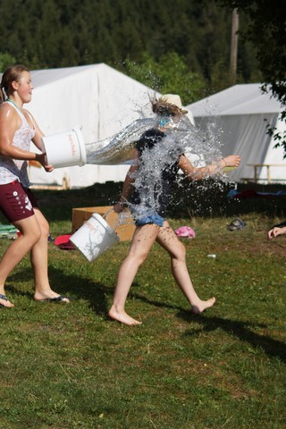 Das Mittagessen Chili con Carne stärkte uns. Am Mittag war es sehr heiß, deshalb gab es Wasserspiele. Am Besten fanden wir die Station, bei der wir Enten mit der Wasserspritzpistolen runterschießen mussten. Es endete in einer nassen, lustigen Wasserschlacht. Leider haben wir nicht nicht alle gefangen und so blieben ein paar Mädels trocken.