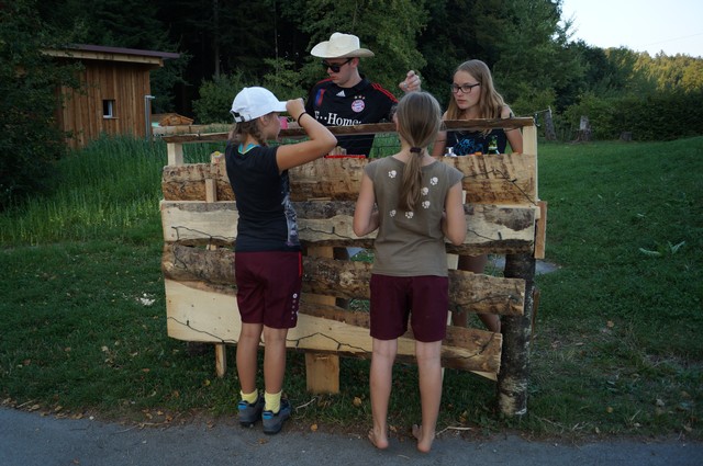 Nach Lagerradio, Kiosk und Mittagspause mit vielen Massagen wurden mir beim Männertag zu richtigen Männern ausgebildet. Wir mussten uns zuerst alle so männlich anziehen, wie es uns nur möglich war. Von Hemden über Boxershorts, Hosenträgern und aufgemalten Bärten war alles dabei. Dann durften wir beim Stationslauf unser Können als Männer beweisen. Wir mussten bauen, Krawatten knoten, Werkzeuge erkennen, Bobbycars einparken, rülpsen und einiges mehr machen. Dabei hatten wir alle sehr viel Spaß und am Ende beim Fotoshooting wurde alles nochmals festgehalten.