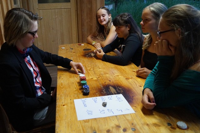 Morgens starteten wir wie immer mit dem Morgenlob und der Andacht. Nach dem Frühstück ging es weiter mit der Castingshow, welche uns ein neues Gleichnis näher brachte. nach dem Highlight des Tages - das Mittagessen ging es durch die schwerwiegenden Burger in die stille Mittagspause zum verdauen. Danach ging es mit einem Geländespiel weiter. Wir mussten Eintrittskarten verkaufen und an Fans verschenken. Nach den gewohnten Diensten, ging es zum Abendessen. Fresh gestylt und voller Elan war der Besuch im Jula-Casino ein voller Erfolg. Von unserem erspielten Geld konnten wir uns dann einen Kaba kaufen. Der Tagesabschluss am Feuer rundete das Ganze ab.