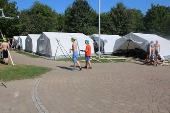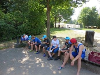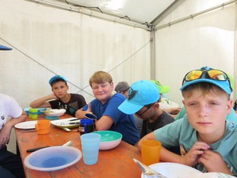 Heute war es endlich wieder soweit. Nach gut einem Jahr hieß es wieder: JULA. Nach guten zwei Stunden kamen wir endlich im Freizeitheim am Breitenauer See an und wurden auch direkt von den Mitarbeitern und der Leitung fröhlich empfangen. Nachdem das Gepäck ausgeladen war, trafen wir uns im Gemeinschaftszelt und das Mitarbeiterteam wurde vorgestellt. Anschließend wurde die Zelteinteilung bekannt gegeben und wir suchten die zugeteilten Zelte auf, um uns mit unseren Zeltkumpanen und den zugehörigen Mitarbeitern bekannt zu machen. Währenddessen war die Küche auch schon fleißig und zauberte Spaghetti mit Tomatensoße auf den Tisch, wo wir alle erstmal ordentlich reingehaut haben und was auch sehr gut mundete! Der erste Programmpunkt ließ auch nicht lange auf sich warten und so hieß es: Zeltgestaltung! Obwohl durch die Begebenheiten des Platzes keine "Grundstücke" um das Zelt zustande kommen konnten und der Platz sehr eingeschränkt war, hatten wir sehr viel Spaß und bauten in der brühtenden Hitze Bänke, Tische, Regale und alles was das Herz begeehrt. Sogar ein Sonnensegel war dabei! Natürlich haben wir dabei genug getrunken! Nach getaner Arbeit hatten wir uns eine Abkühlung mehr als verdient und so ging es endlich an den See. Erschöpft aber glücklich stapften wir den Weg zurück zum Zeltplatz wo die Küche mal wieder am Werk war und das Abendbrot vorbereitete. Nun erwartet uns noch der klassische Auftaktabend mit diversen Kennenlernspielen und als Abschluss eine Nachtwanderung um den See.