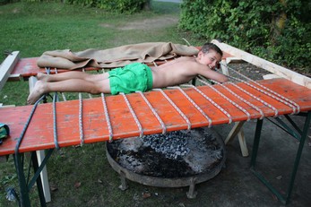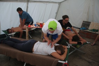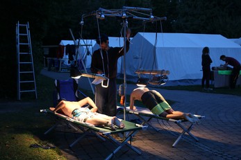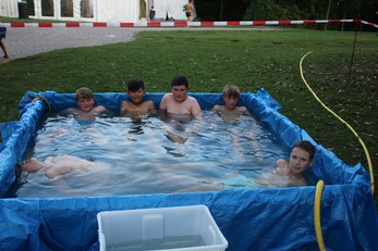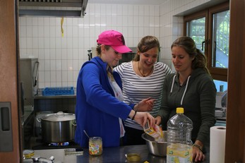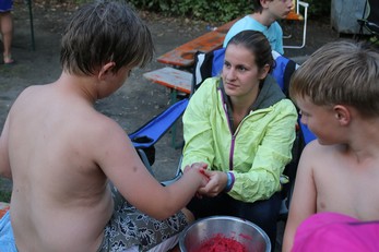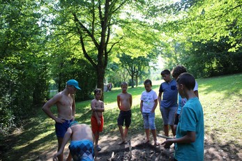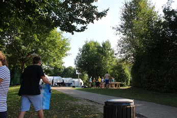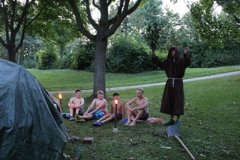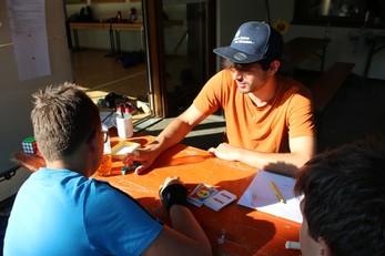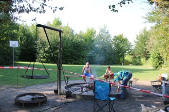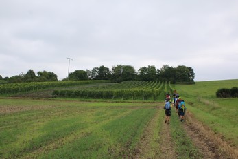 Punkt 7 Uhr klingelte uns unser Wecker mitten in den Weinbergen irgendwo nordöstlich von Heilbronn wach. Wir krochen aus unseren Schlafsäcken und bemerkten schnell, dass es ziemlich kalt war. Also versammelten wir uns ziemliuch schnell um das Lagerfeuer um schnell in den Tag zu starten. Während wir unsere Schlafsäcke und Isomatten aufräumten, kümmerten sich die Mitarbeiter um das Frühstück. Neben klassischen Dingen wie Müsli, Nutella und Kaba hatten sich die Mitarbeiter die Mühe gemacht und Rührei über dem Feuer zubereitet. Ein echter Gaumenschmauß! Nach dem Frühstück packten wir zügig unsere restlichen Sachen ein und kurz darauf kamen auch schon Benni und Sophie um unser Zeug abzuholen, damit wir endlich loswandern konnten. Der nächtliche Nebel verzog sich und die Sonne kam langsam durch. Sehr zu unserer Freude! Zurück ging es wieder durch die Weinberge, ein paar Ortschaften und viele Felder. Ziemlich pünktlich gegen 11:30 Uhr kamen wir endlich auf dem Platz an, als erste Gruppe, wo wir direkt von der Leitung und der Küche mit der Gitarre erwartet wurden. Doch da war noch eine Person. Udo, langjähriger Mitarbeiter und bis letztes Jahr auch Leitung, war zu Besuch und wird die Mitarbeiter bis zur Abreise tatkräftig unterstützen. Vielen Dank an dieser Stelle dafür! Nach kurzem Frischmachen oder dem ein oder anderen Toilettengang gab es auch direkt Mittagessen. Zuvor kam auch die zweite Gruppe unbeschadet an und wir freuten uns alle wieder zu sehen. Bei großartigen Hotdogs wurde direkt über die Erlebnisse geredet und Impressionen ausgetauscht. Etwas später kam auch die letzte Gruppe an, welche aber auch die größte Strecke zurücklegen musste. Wir sind alle froh, dass alle unbeschadet und gesund den Weg zurück zum Zeltplatz gefunden haben. Nachdem wir unsere wahrscheinlich leeren Bäuche wieder gefüllt hatten, stand ein langer freier Nachmittag an. Jeder durfte tun was er wollte. So mancher nahm die Möglichkeit an Fußbal zu spielen, zu faulenzen und sich auszturuhen, oder klassisch einfach weiter am Zauberwürfelc rumzuarbeiten. Mit dem Abendessen ging das reguläre Programnm dann weiter. Es gab wie gehabt die Reste vom Mittagessen und das übliche Vesper. Anschließend mal wieder ein Highlight: Der Wellness-