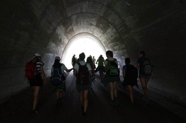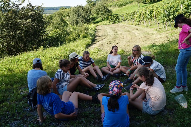 Der Mittwochmorgen begann mit einer guten und einer schlechten Nachricht. Eines der Jula-Highlights stand bevor: Die 2 Tages-Tour! Doch leider mussten wir feststellen, dass unsere handgemalte Lager-Flagge nicht mehr an ihrem Platz hing. Während unserem Frühstück, dem schlumpfigen Bibel-Live und dem Packen für unsere Tour, ergaben sich viele Gerüchte über Personen in grünen Jacken und Buben-Jula Mitarbeiter die unsere Flagge entwendet haben könnten. Zum Mittagessen kam dann die Bestätigung. Ein Brief der Diebe war in der Post und darin einige Rätsel die es nun zu knacken galt, damit wir unsere schöne Flagge wiederbekommen konnten. Zum Glück bot sich die 10km Wanderung an diesem Tag an, um die Rätsel auf dem Weg zu lösen! Mit genug Wasser im Gepäck und voller Motivation machten wir uns auf den Weg zu unserem Nachtlager am Waldspielplatz. Der Weg war anstrengend und nicht immer leicht zu finden, doch trotz allem schafften wir es heil und totmüde an unserem Ziel anzukommen. Dort wurden wir dann mit dem Abendessen beliefert und hatten noch einen schönen Tagesabschluss am Lagerfeuer bis wir schnell und friedlich unterm Sternenhimmel einschliefen.